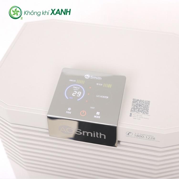 Máy lọc không khí A.O.SMITH KJ500 gây ấn tượng đầu tiên với người nhìn bởi thiết kế vuông vắn, nhỏ gọn bao bởi lớp nhựa cao cấp màu trắng.