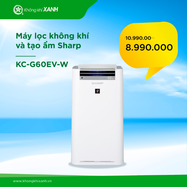 9. Máy lọc không khí và tạo ẩm Sharp KC-G60EV-W