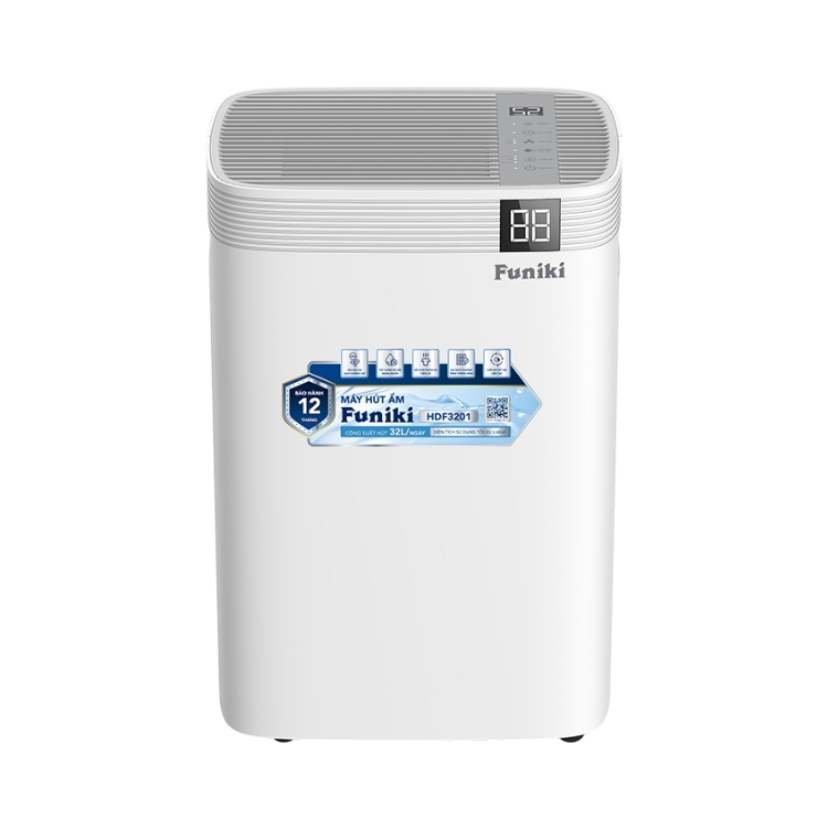 Máy hút ẩm Funiki ứng dụng công nghệ hút ẩm ngưng tụ hiện đại, chủ động hút không khí ẩm và tách hơi nước qua hệ thống làm lạnh, sau đó trả lại luồng không khí khô ráo, giúp không gian nhanh chóng trở nên thoáng sạch và dễ chịu.