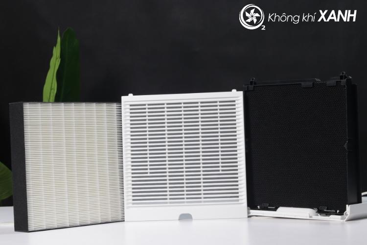 Hệ màng lọc của DAIKIN bao gồm: 2 màng lọc thô bên hông máy, màng lọc carbon và màng lọc HEPA nằm phía bên trong.