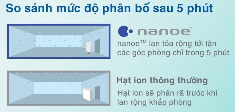 Các hạt NanoE có thời gian tồn tại lâu gấp sáu lần so với những hạt ion thông thường trong không khí và có độ ẩm cao hơn khoảng 1000 lần so với các ion âm. Nhờ có kích thước siêu nhỏ, chỉ bằng một phần tỷ các hạt hơi nước nên có thể thâm nhập sâu vào các sợi vải để loại trừ các tác nhân gây mùi. Hơn nữa, Hạt nanoe được sinh ra từ hơi ẩm trong không khí, nên nguồn phát nanoe không bị hao mòn. Do đó, việc định kỳ thay linh kiện sẽ không cần thiết.