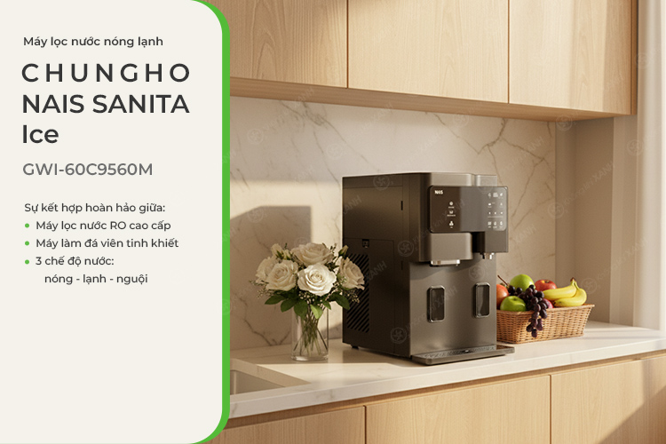 Máy lọc nước ChungHo Sanita ICE GWI-60C9560M tích hợp đa chế độ: nước nóng, lạnh, thường và làm đá viên mang đến giải pháp tiện lợi cho gia đình và văn phòng nhỏ, góp phần nâng cao chất lượng cuộc sống.