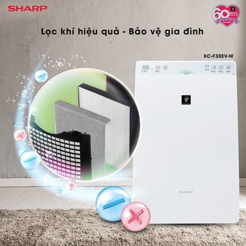 Cũng như các dòng máy khác cùng thương hiệu, Sharp KC-F30EV-W cũng sử dụng công nghệ Plasmacluster ion độc quyền của Sharp. Máy tạo ra nồng độ Plasmacluster ion (PCI) lên đến 7000 ion/cm3 giúp loại bỏ 99,9% vi khuẩn, ngăn chặn sự phát triển của nấm mốc, các chất gây dị ứng và loại bỏ các mùi hôi khó chịu.